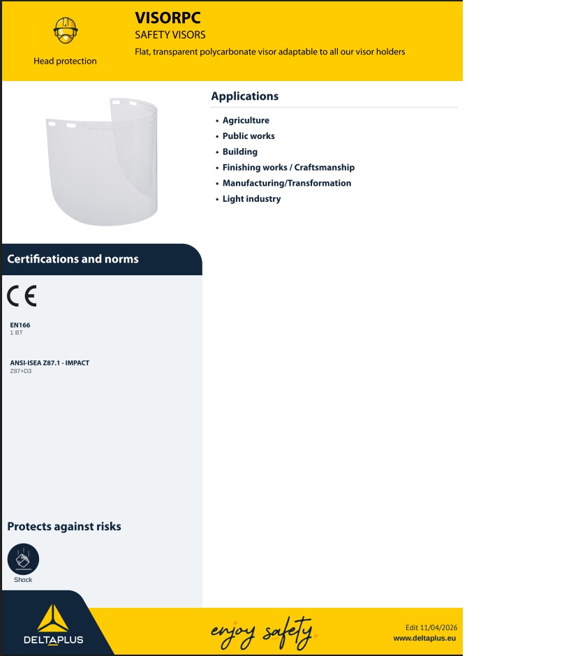 DELTAPLUS Clear Polycarbonate Visor – VISORPC