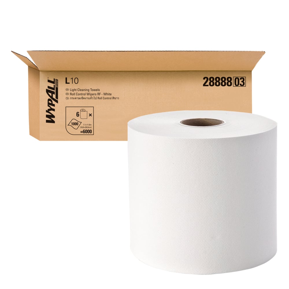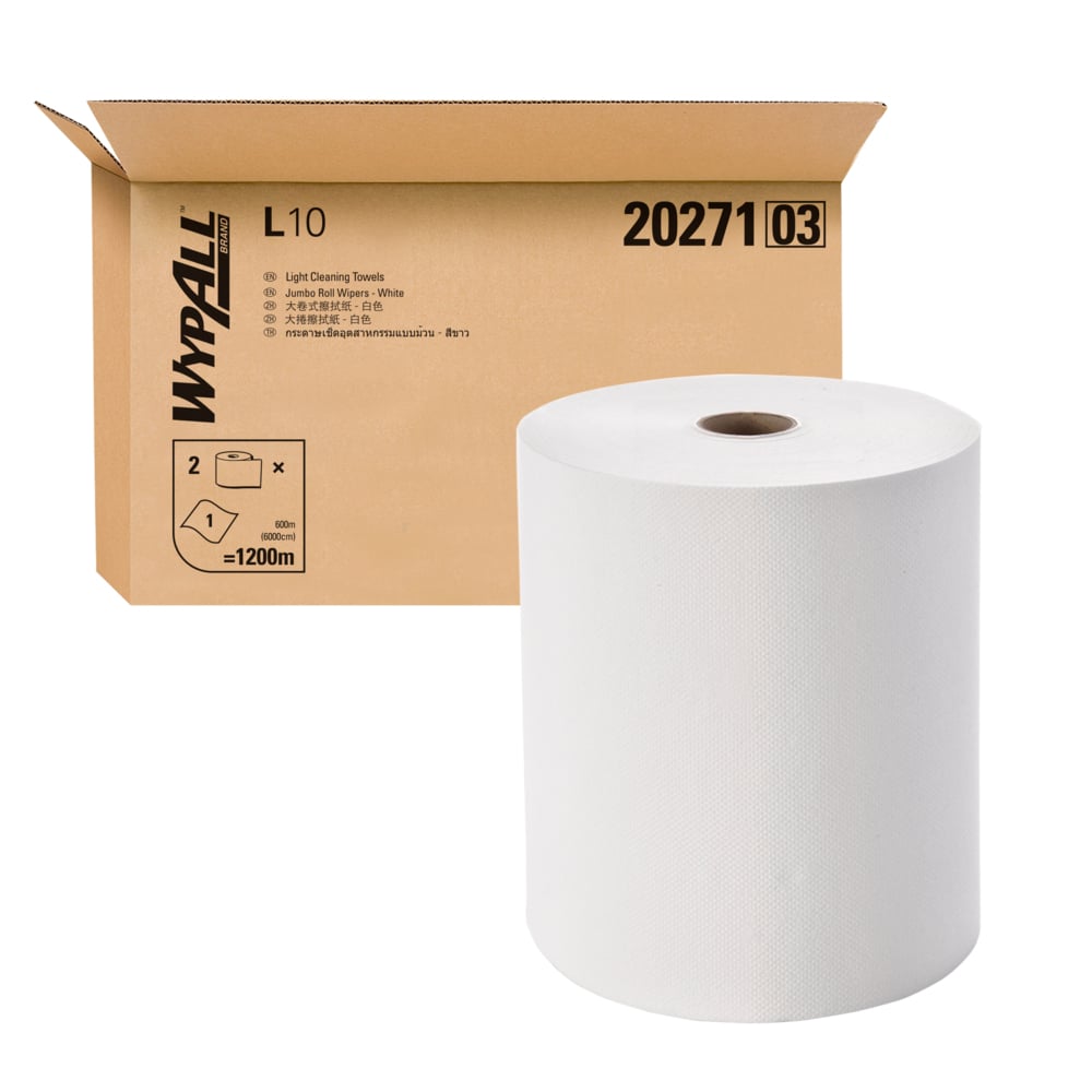 From wiping up grime, oil and grease to soaking up food prep spills, having the right wipe on hand is crucial to your operation. A clean and great alternative to paper towels, rags and shop towels, WypAll® offers a wide range of task-specific wipes and cloths designed to meet your industry, budget and absorbency needs. WypAll® L10 Jumbo Roll Wipers solve the problem with long standing rolls at 600 meters long wherever continuous supply of wipers are essential to efficiency. They are designed for general cleanup tasks and single use applications. Good for spray and wipe jobs, absorbs incidental spills and cleans smooth & glass surfaces. WypAll® Jumbo Roll Wipers by Kimberly-Clark Professional®, form part of a wider range of products designed to create a safer, healthier and more productive workplace. 2 rolls x 600m, white, 1-ply (2 rolls, 1,200m)