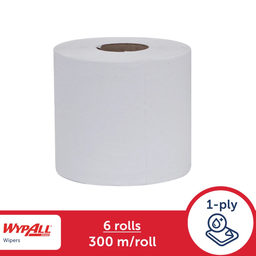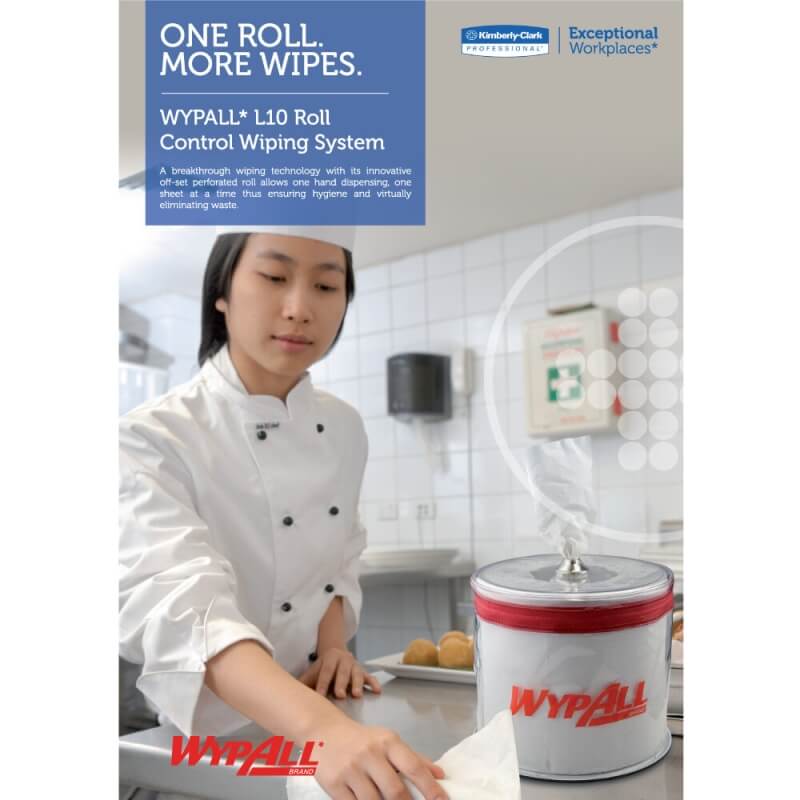 From wiping up grime, oil and grease to soaking up food prep spills, having the right wipe on hand is crucial to your operation. A clean and great alternative to paper towels, rags and shop towels, WypAll® offers a wide range of task-specific wipes and cloths designed to meet your industry, budget and absorbency needs. WypAll® L10 Roll Control Wipers are innovative roll control wiper systems that help reduce wiper consumption with each sheet being dispensed individually eliminating waste caused by streaming. Single sheet dispensing also helps to reduce the risk of cross contamination as users only touch the sheet they take. This multi-purpose wipers are great for cleaning up water and oil spillage and food debris, drying hand, and wiping surface. HACCP International Food Zone Secondary (FZS) certified. Compatible with WypAll® Tabletop Dispenser (26300) and Aquarius® Roll Control Wiper Dispenser (70810). WypAll® L10 Roll Control Wipers by Kimberly-Clark Professional™, form part of a wider range of products designed to create a safer, healthier and more productive workplace. 6 rolls X 300m, white, 1-ply (6 rolls, 6,000 sheets)
